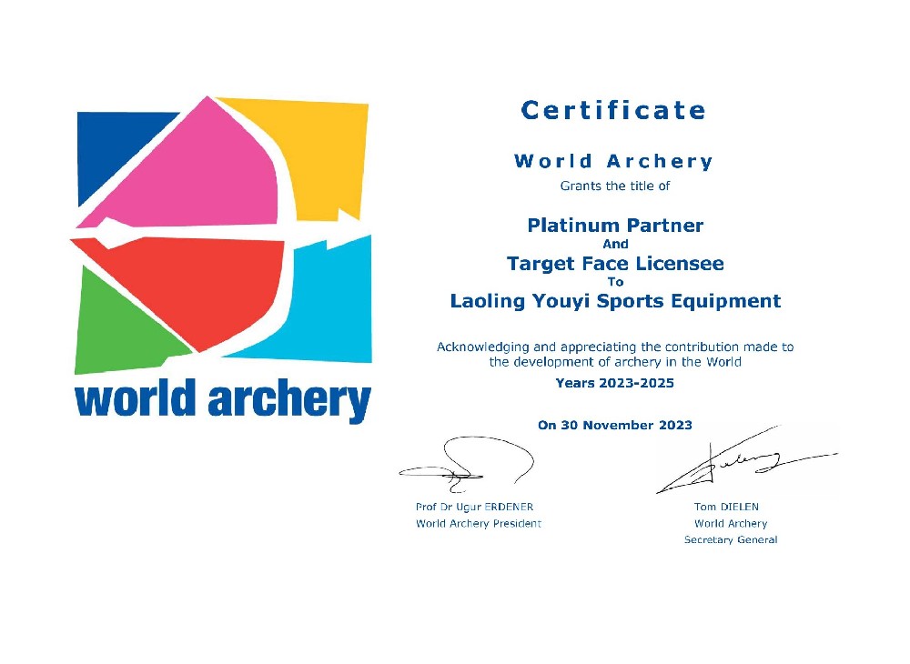 國際射箭聯(lián)合會-白金合作伙伴、國際射箭聯(lián)合會認(rèn)證器材、中國射箭協(xié)會審定器材